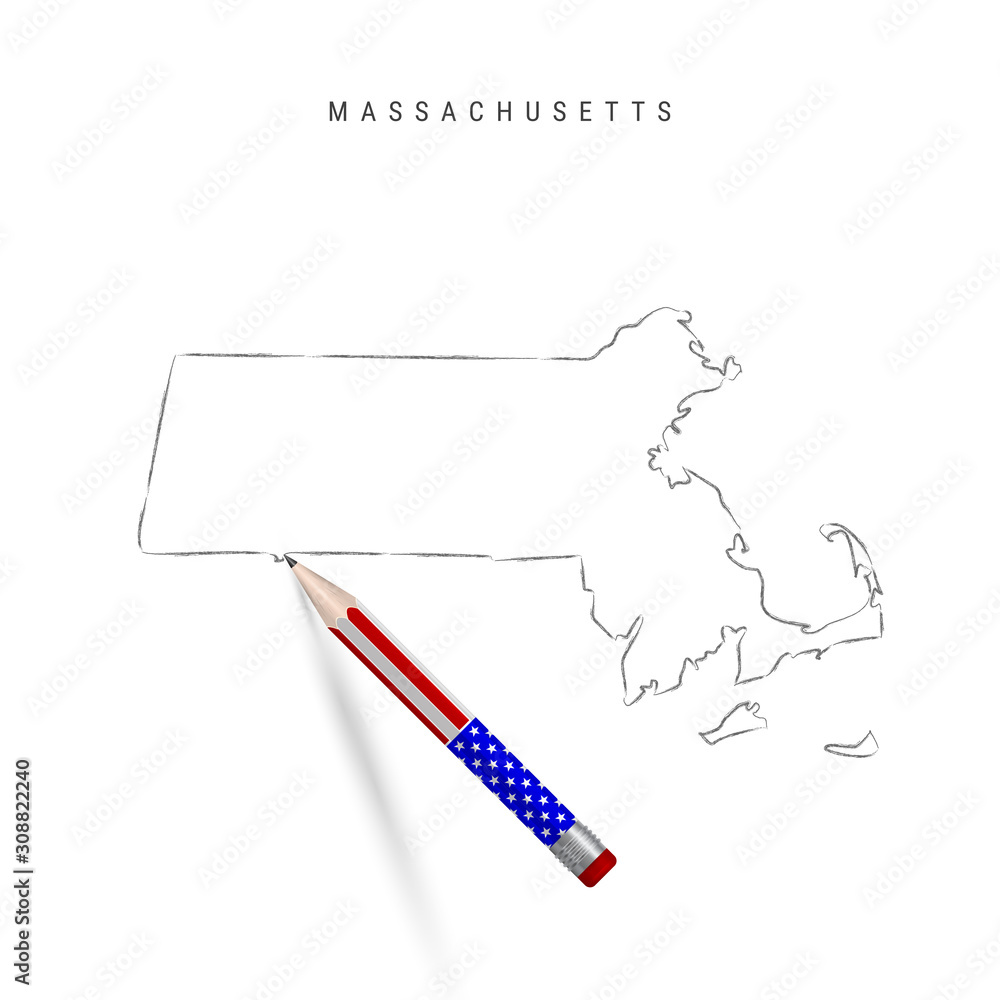 Massachusetts Us State Vector Map Pencil Sketch Massachusetts Outline Map With Pencil In American Flag Colors Stock Vector Adobe Stock